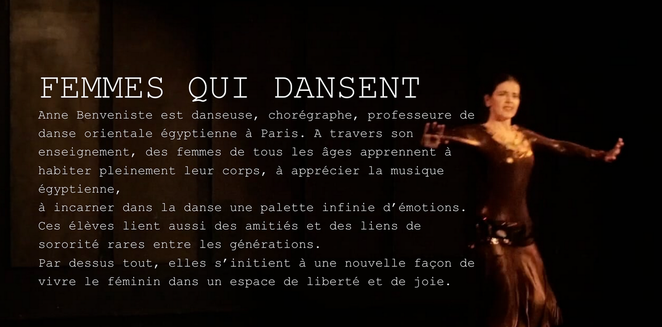 Anne Benveniste, danseuse, chorégraphe, professeure de danse orientale égyptienne, passeuse d'un répertoire musical unique, était mon enseignante de danse depuis plusieurs années,